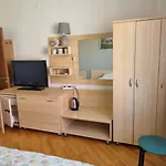 En elkedel, et køleskab og køkkenudstyr findes der også. Denne 20 m^2 ferielejlighed ligger 10 km fra Palanga lufthavn.